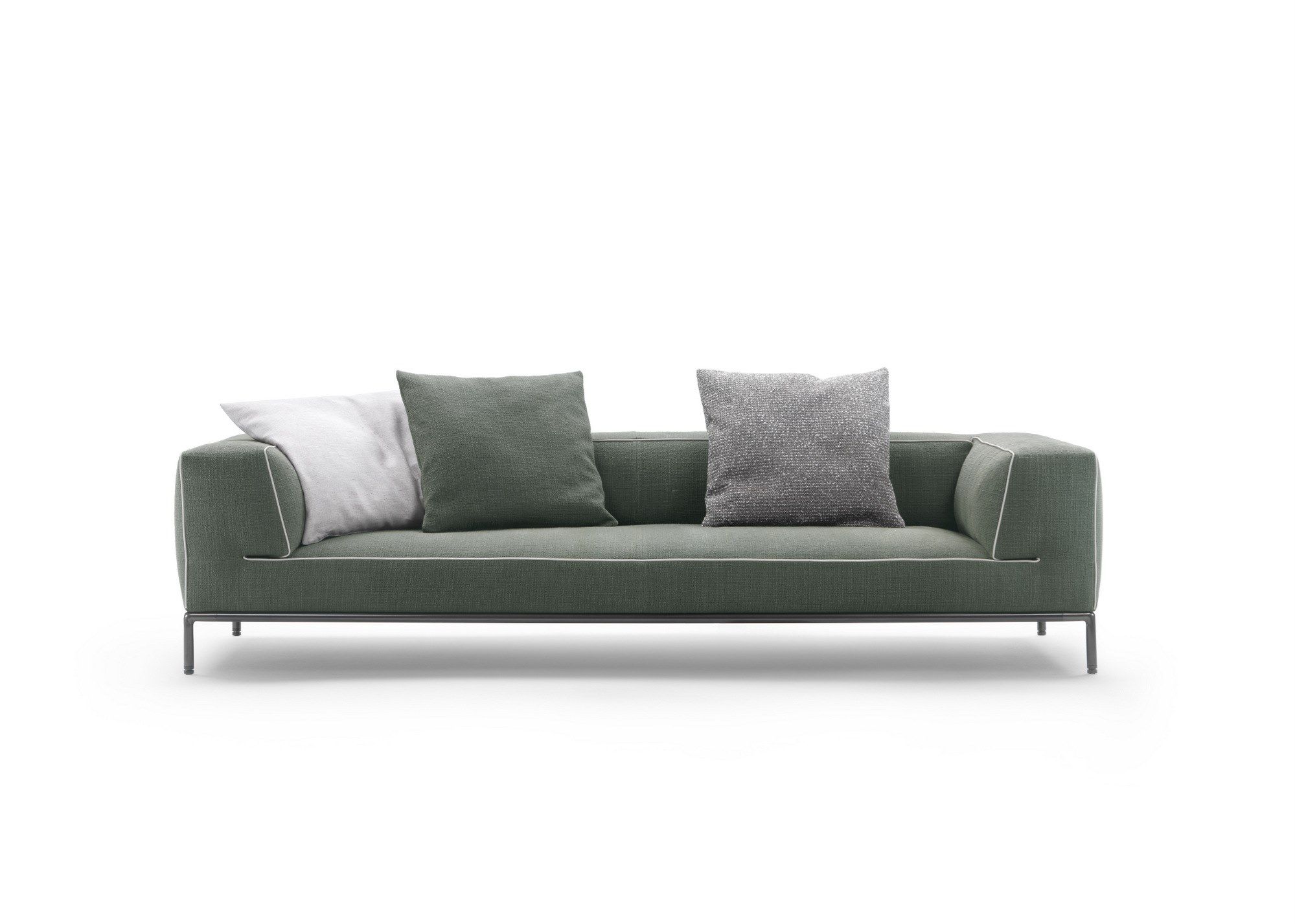Its dignified, versatile personality allows the Perry Up sofa to wear with equal aplomb any of the fabrics and exclusive leathers in the Flexform collection, and to create unique – tone-on-tone or contrasting – pairings between the color of the upholstery material and the grosgrain or eco-leather piping.