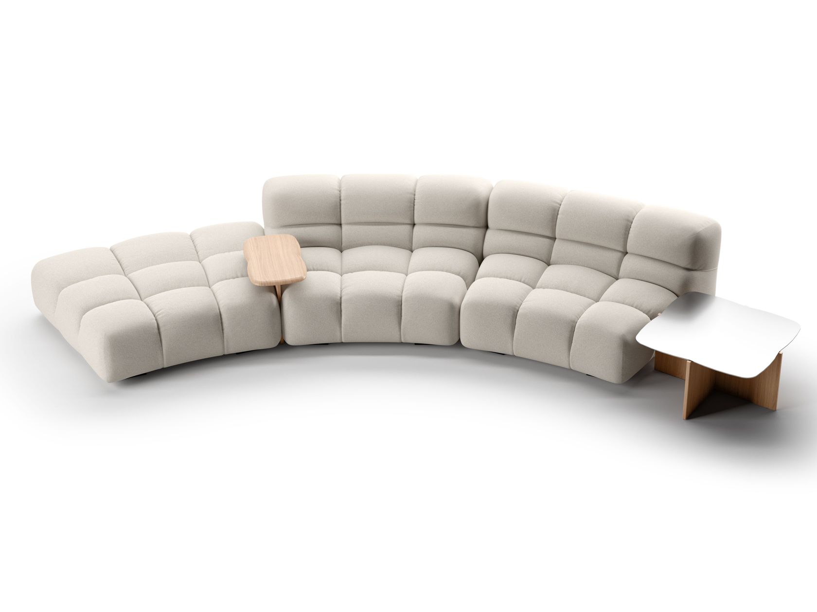 Tufty-Time 20 represents the contemporary evolution of Tufty-Time, the iconic sofa system designed by Patricia Urquiola in 2005. Twenty years after its launch, the system has been reinterpreted while maintaining the essential characteristics that have made it a great success, including modularity, enveloping comfort and compositional flexibility. The volumes, padding and seat height have been redesigned to offer even greater comfort, while the introduction of a curved module expands the system’s potential, giving rise to even more fluid and convivial configurations, ideal for both residential and contract spaces. Particular attention has been paid to the theme of circularity. Tufty-Time 20 is in fact fully disassemblable, ensuring that all the components can be given a second life at the end of the product’s life cycle.